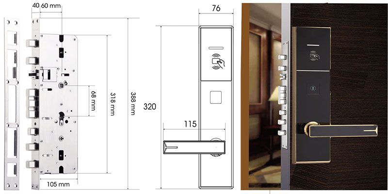 - Kích thước khóa: 76x320 mm