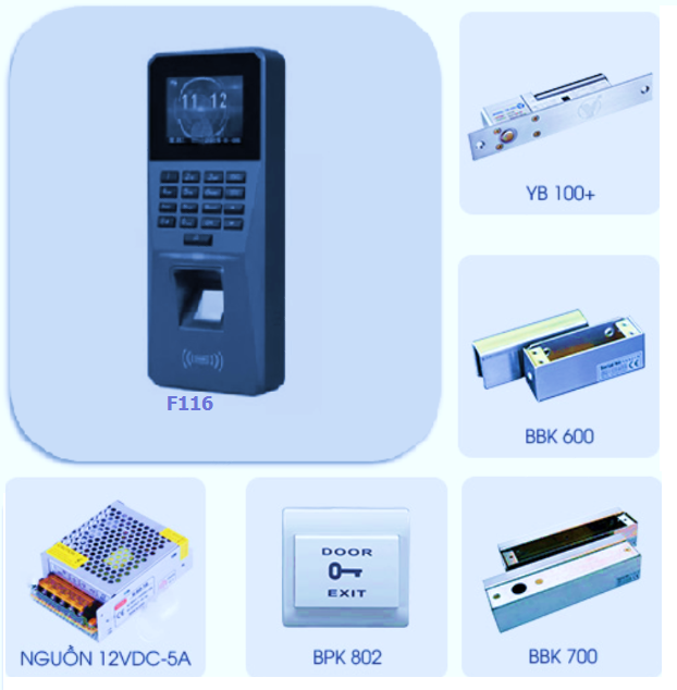 Hệ thống thiết bị kiểm soát cửa, khóa cửa vân tay là hệ thống điều khiển khóa điện, khóa hút nam châm, khóa chốt thả bằng đầu đọc chấm vân tay. Hệ thống kiểm soát quản lý người có thể ra vào cổng một cách chính sác an toàn. Bộ khóa cửa phù hợp với tất cả chất liệu cửa như sắt, nhôm, inox, và các kiểu cửa như cửa mở 4 cánh, cửa lùa, cửa mở 2 cánh, 1 cánh...