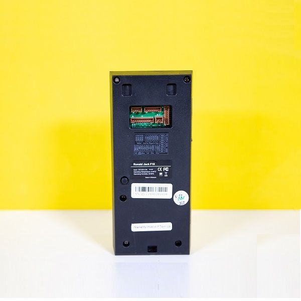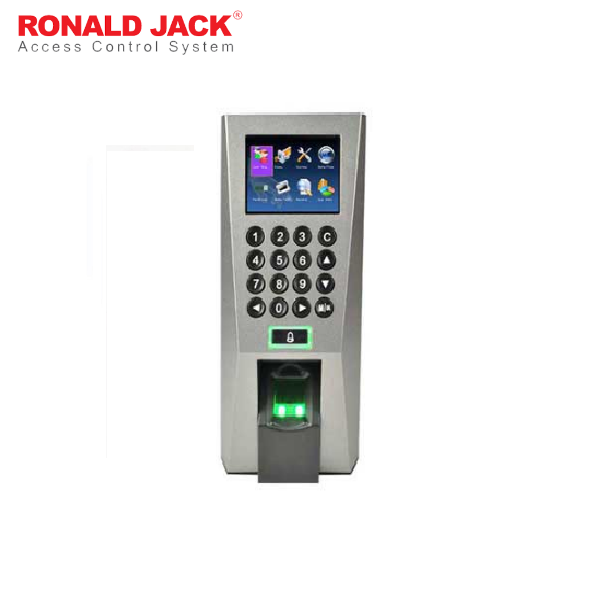 - Máy chấm công Ronald Jack F18 là 1 đầu đọc vân tay và thẻ được cải tiến để ngoài việc sử dụng cho mục đích chấm công còn có thể ứng dụng kiểm soát cửa ra vào (Access control). Thiết bị cho một tốc độ xác nhận nhanh chóng, chất lượng hình ảnh cao với màn hình màu TFT-LCD cùng cảm biến vân tay quang học bằng hồng ngoại rất nhạy, ngoài ra F18 còn có thể cài đặt độc lập với hệ thống kiểm soát của các hãng thứ 3 mà không gặp trở ngại gì, máy cũng cung cấp cho người dùng nhiều chuẩn kết nối khác nhau như: TCP/IP, RS485, USB